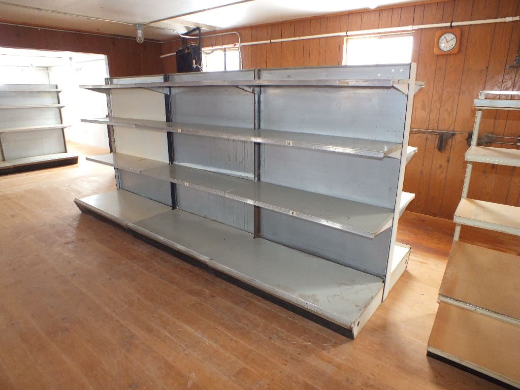 Chattels: Acetylene torch set, heavy-duty shelving including Lot #1, (3) 4’sections of double-sided shelves, lot #2 & 3 (5) 4’sections of double-sided shelves.