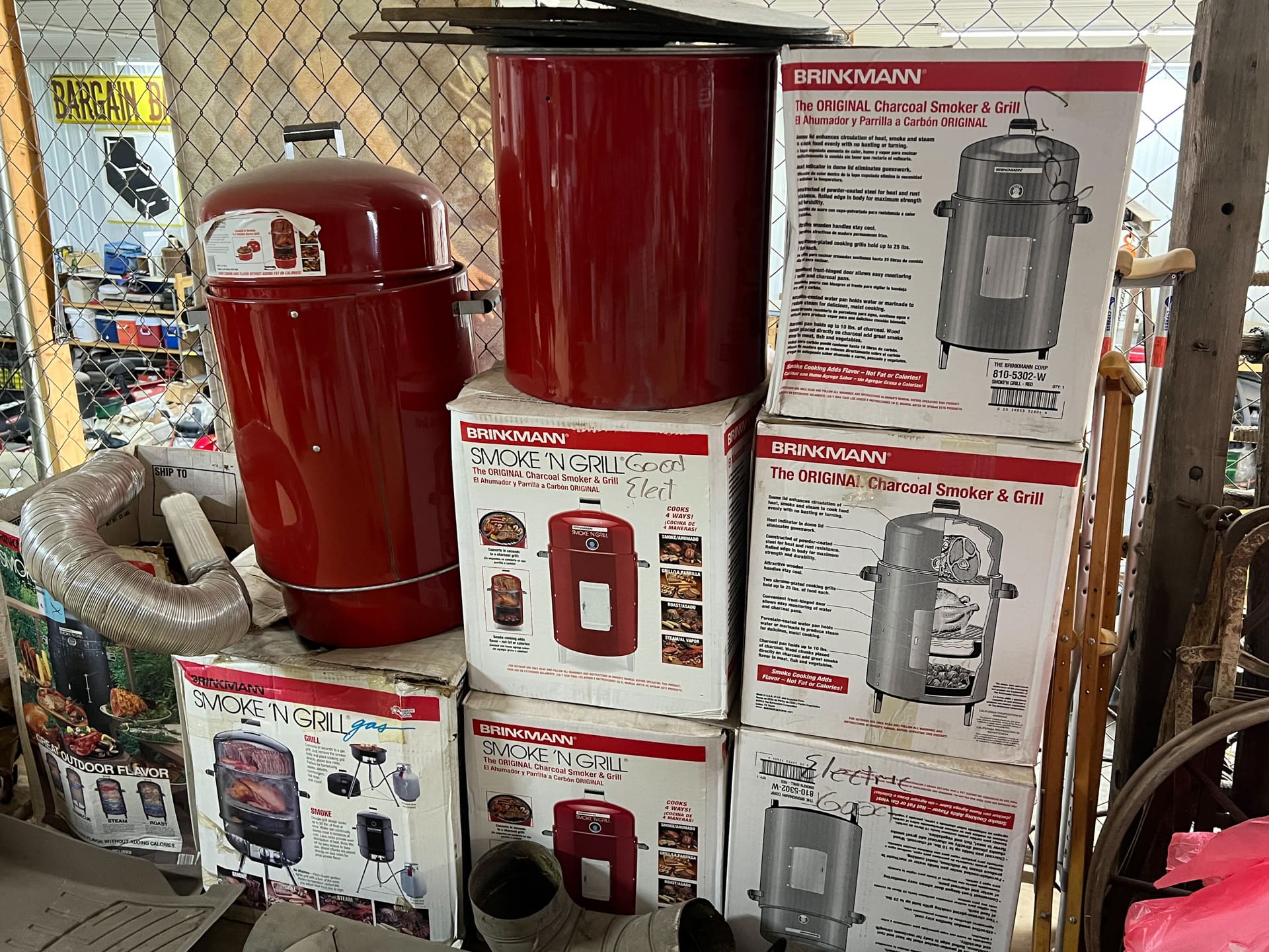 Household/Misc./Sporting goods: LG front load washer, electric dryer, two ice cream freezers, massage tablestacking storage baskets, complete office phone system, baseball gloves, misc. camping tents, two lots of Brinkman smokers; variety of gas, electric and charcoal; softsided shotgun/rifle cases, large dog crate, inflatable shooting stand, 5 (five) soft-side long gun cases, several insulated coolers, charcoal starter, large gas grill, Rubbermaid outdoor storage chest, nice stainless steel outdoor grilling sink setup, outdoor gas firepit, Chimnea fireplace, several fishing rods/reels, large selection of outdoor wind chimes, antique metal lockers/cabinets, wheelbarrow, hose reel, misc. interior doors, large plastic stock tanks (several), Toro mower w/bagger, stainless steel sinks, cookware, kerosene heater, Colliers encyclopedia set, old books, small V bottom boat, misc. lawn/garden tools.