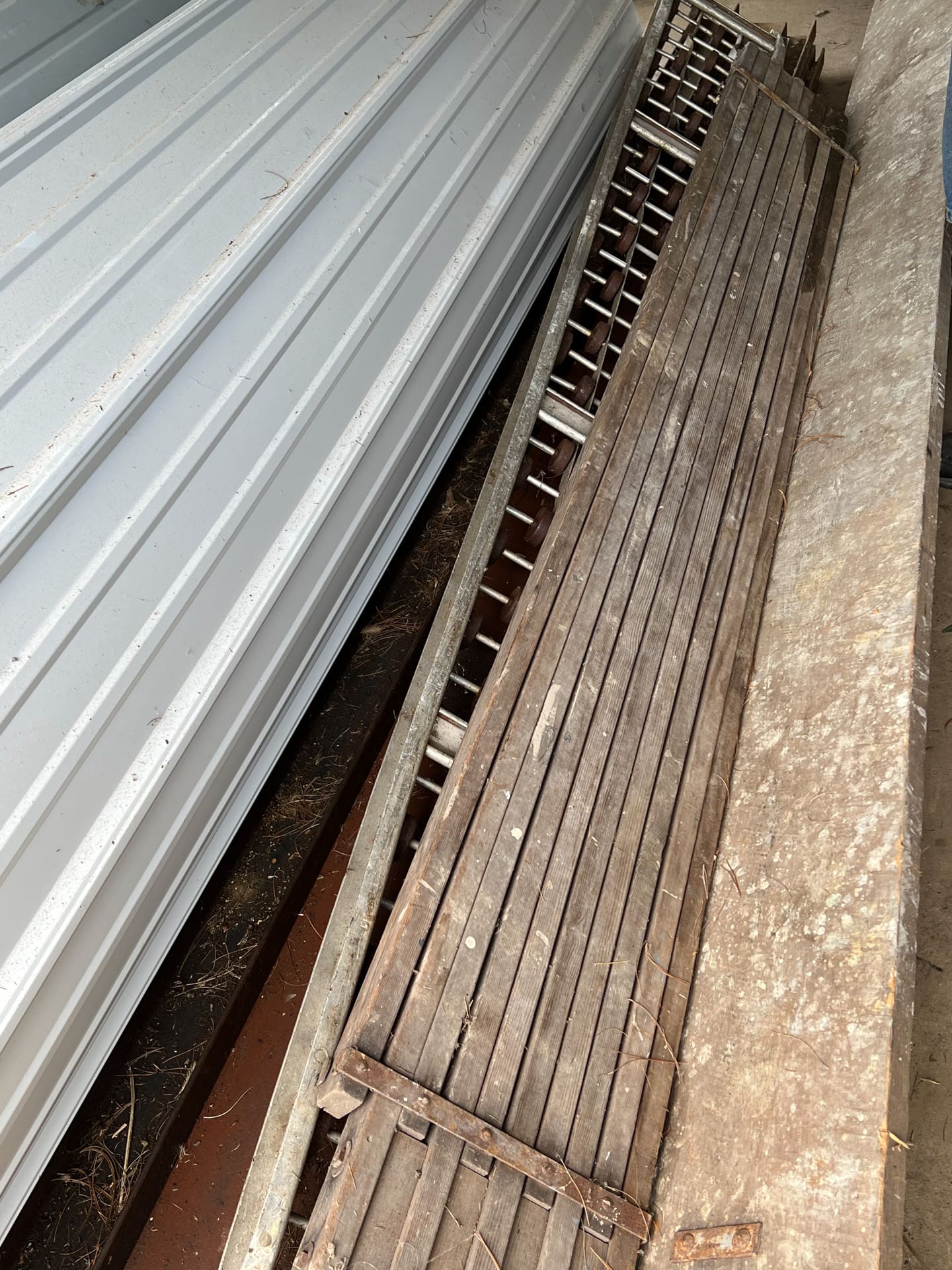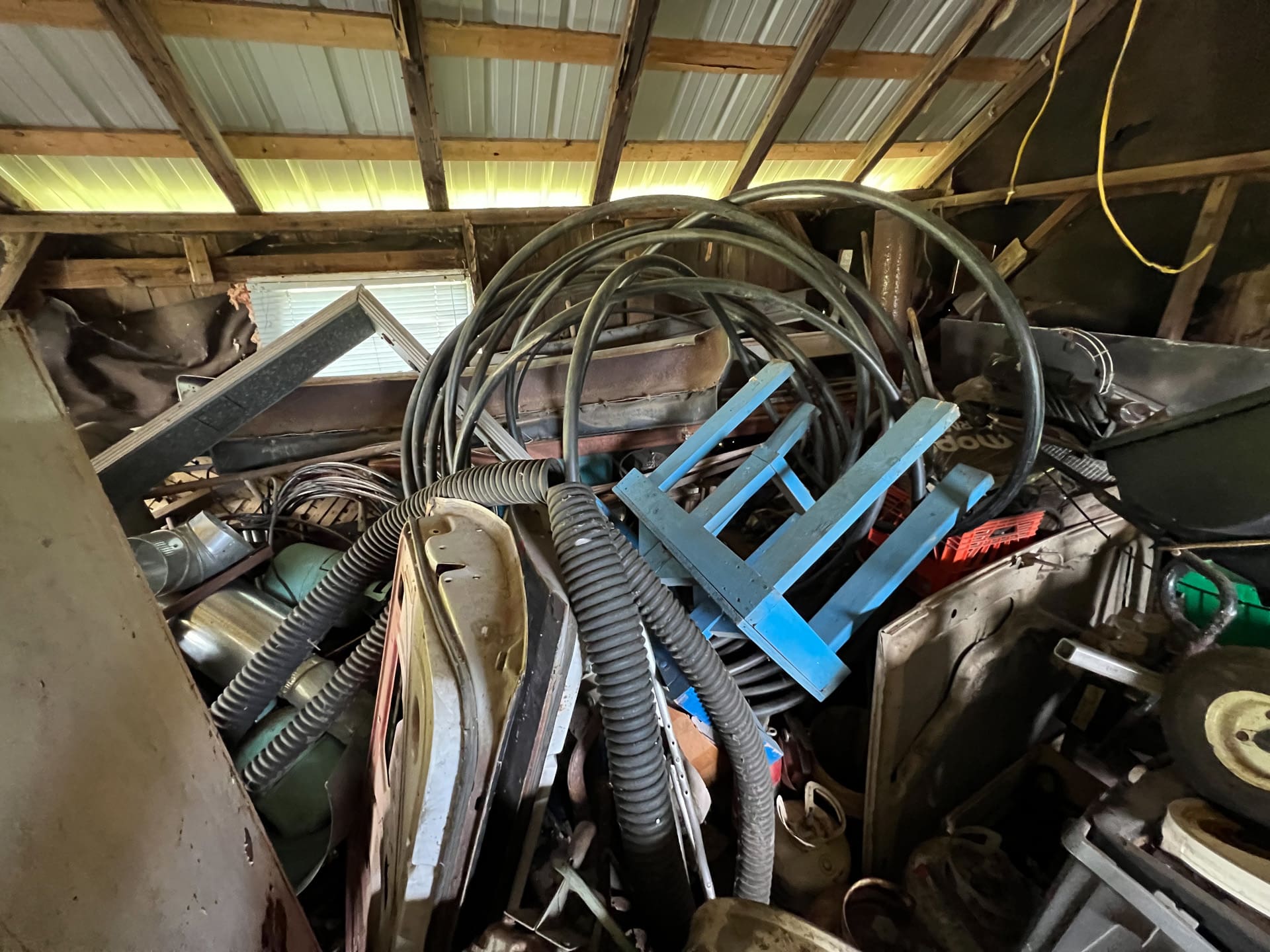 Wooster; Attn: WWII military equipment collectors! Two rare “Treibstoff Feuergefährlich” German military gas cans; large oil drum from McNay Gas Co. Coraopolis PA, antique freestanding traffic light, Lionel “American Flyer” train engine, track, two transformers, Cosco kitchen stool w/steps, lot of wood framed windows, old sign from “Bargain Barn” vintage bobsled, vintage Clinton outboard motor.