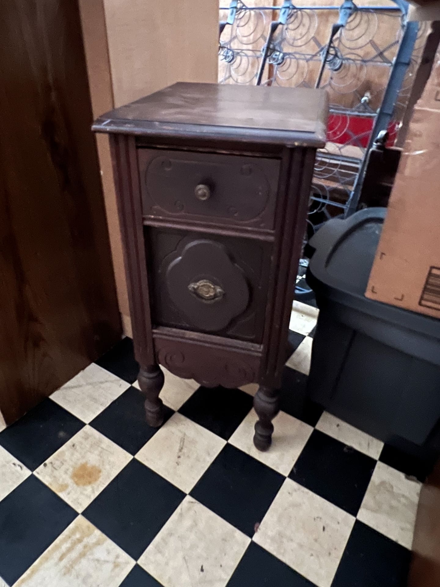 Good quality overstuffed chair, upholstered recliner, nice oak corner TV stand, oak chairs and dining table, lighted oak barrister’s bookcase, variety of bookcases and shelves, vintage art deco bedroom set, adjustable bed, antique nightstand, wooden benches, card table w/chairs, rolltop desk, glider rocker.